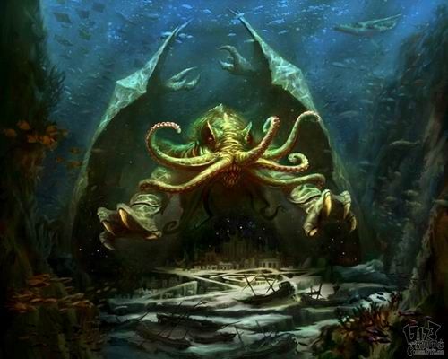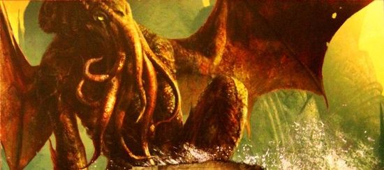 传说中的克苏鲁是从异世界飞来地球的邪神,他身形巨大,形似章鱼的头上长着蝙蝠般的翅膀,如人类的四肢覆盖有鳞片,身形不定,身体各部分的比率及详细状况时时刻刻都在发生变化。