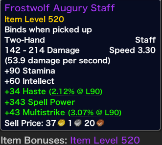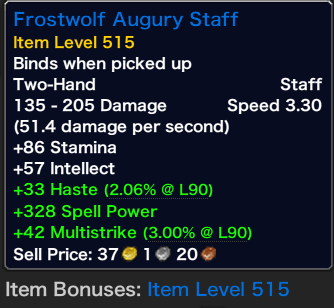 比如ID为111540的法杖,可以代表着绿色510等级的"霜狼占卜法杖",也可以是蓝色515等级的版本,亦可以是紫色520等级的法杖。