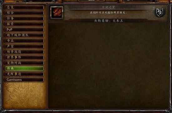 在魔兽6.0中成就列表将多增加一个分类——"传承",在测试服中已经有了这个成就分类,但列表中只出现了灭团之星成就,其余都没实装。
