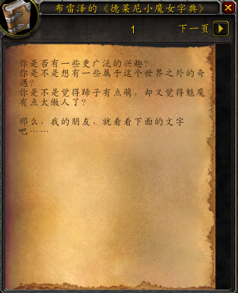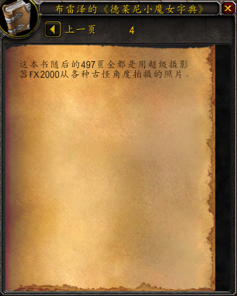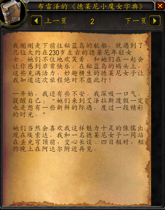 这五本秘籍的名字十分有特点,分别叫做: 布雷泽的《人类野蛮女友驯服手册》、 布雷泽的《暗夜豪放女手记》、 布雷泽的《德莱尼小魔女字典》、 布雷泽的《如何泡上侏儒小妞指南》、 布雷泽的《我与矮人妹子有个约会》。