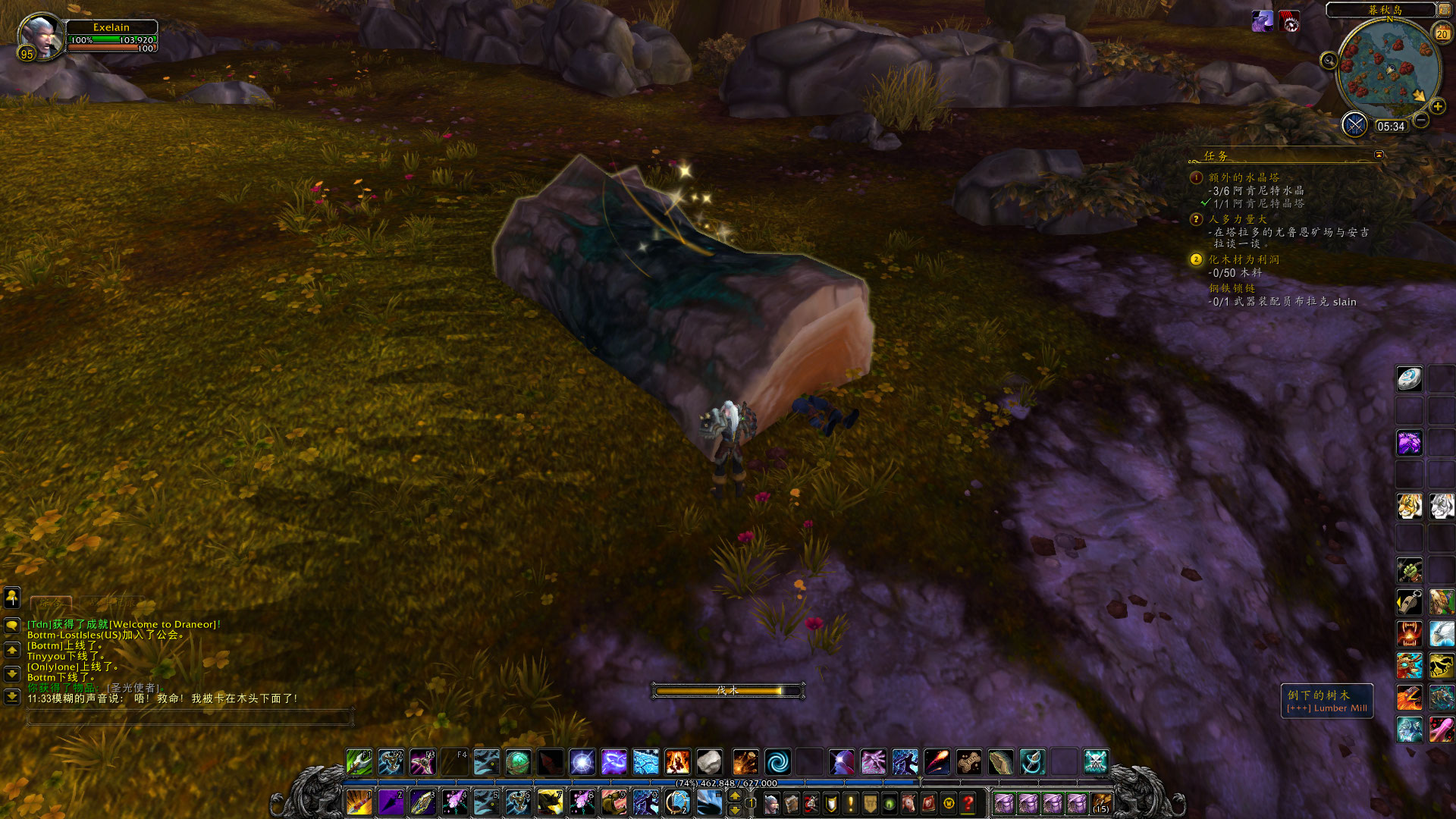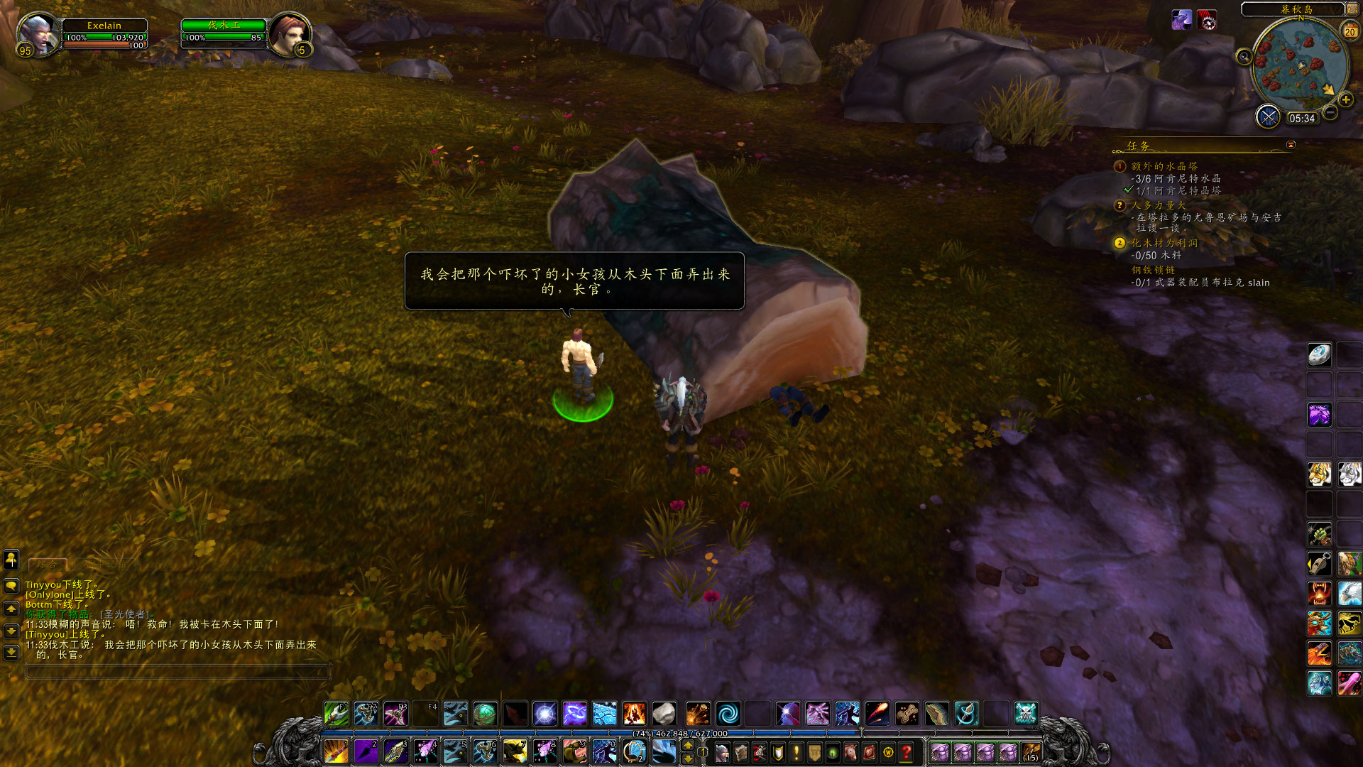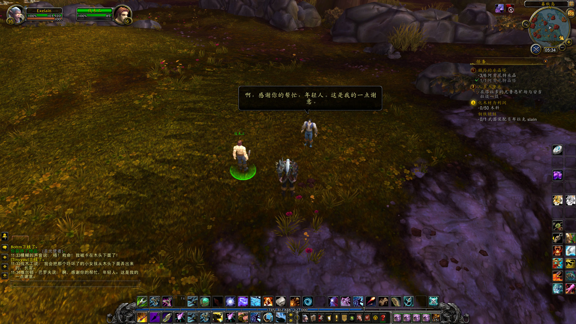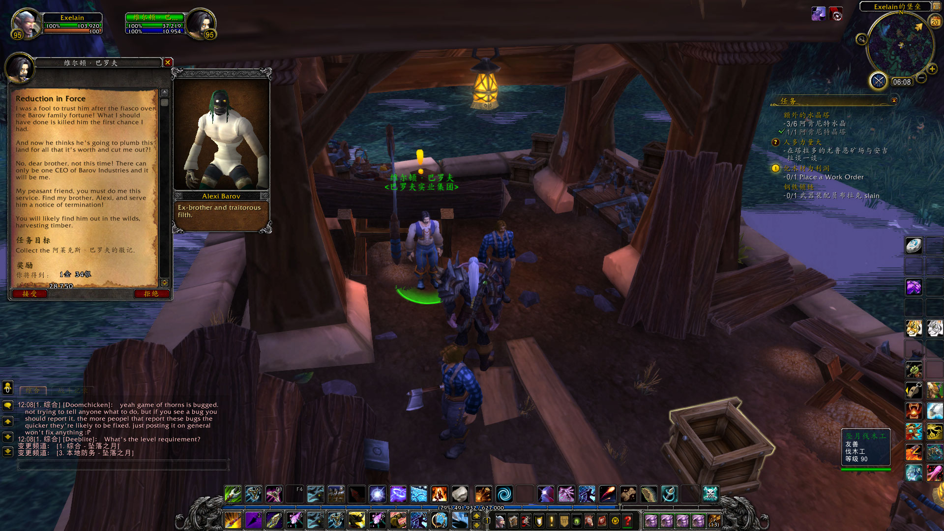 在伐木的工程中,偶尔也会遇到有趣的事情,比如我在塔拉多就发现了被倒下的树木给压住了的维尔顿巴罗夫。(没错,就是旧大陆赫赫有名的巴罗夫家族的后代,他们来到了德拉诺并开了巴罗夫实业公司~)