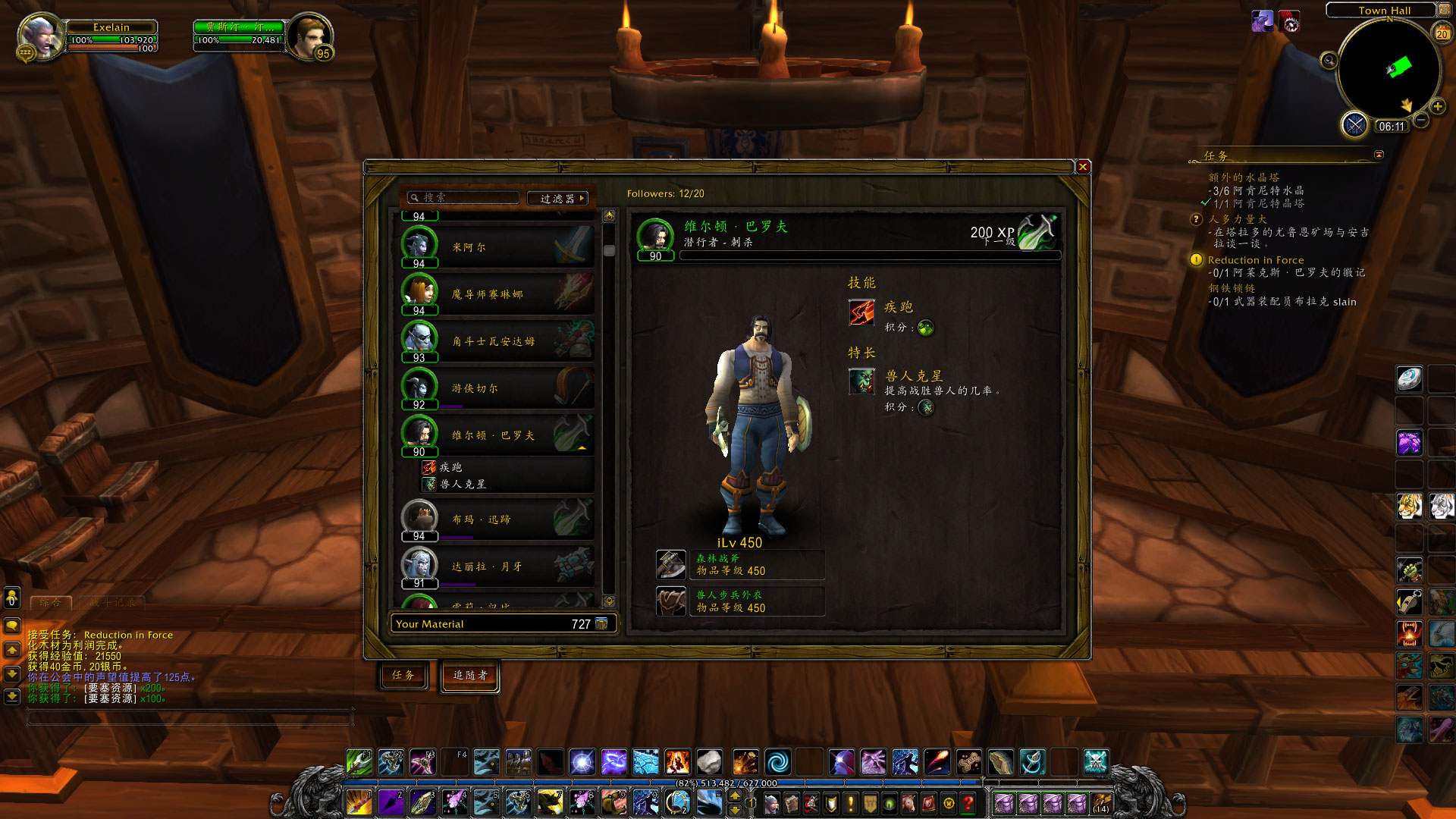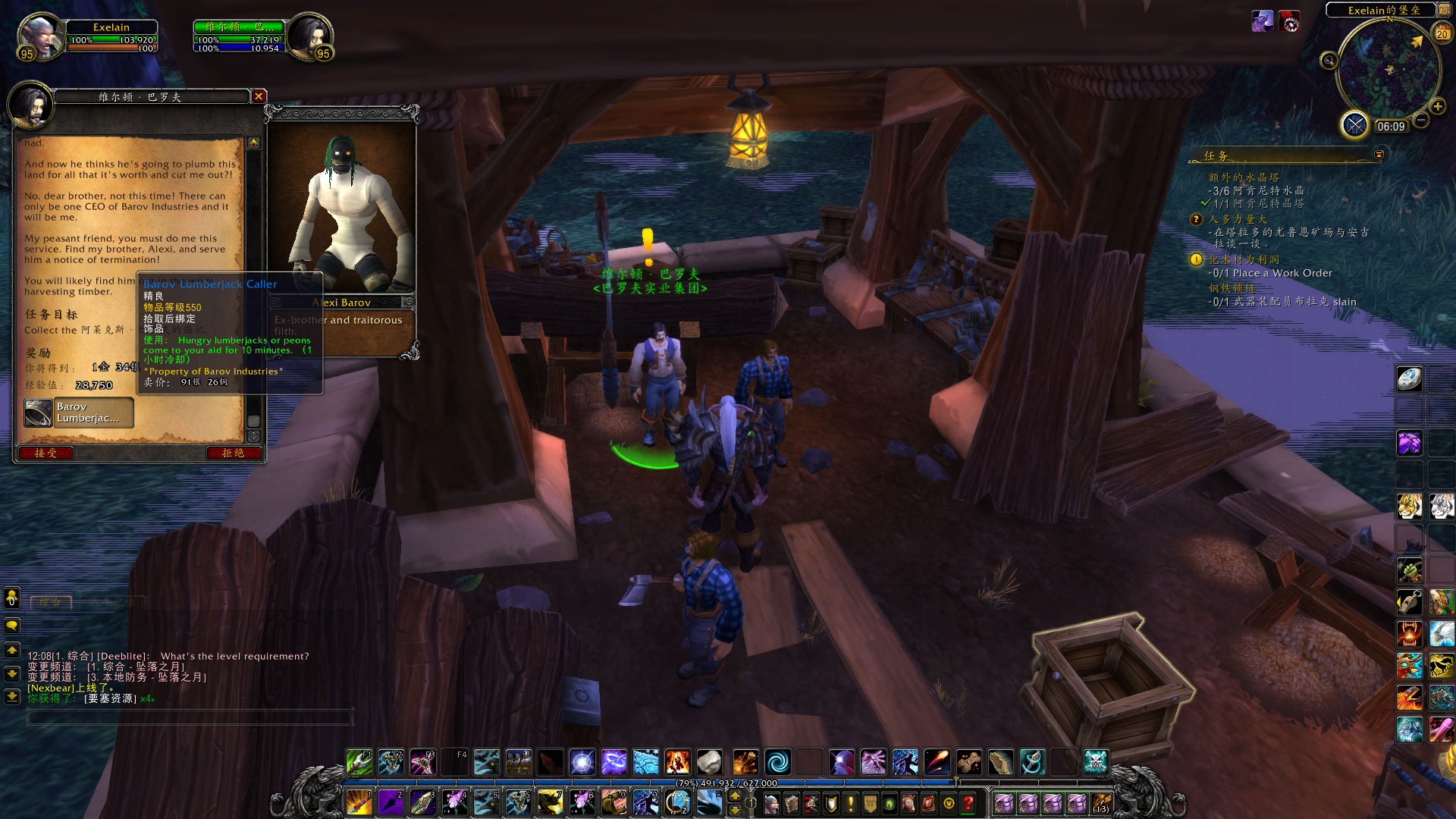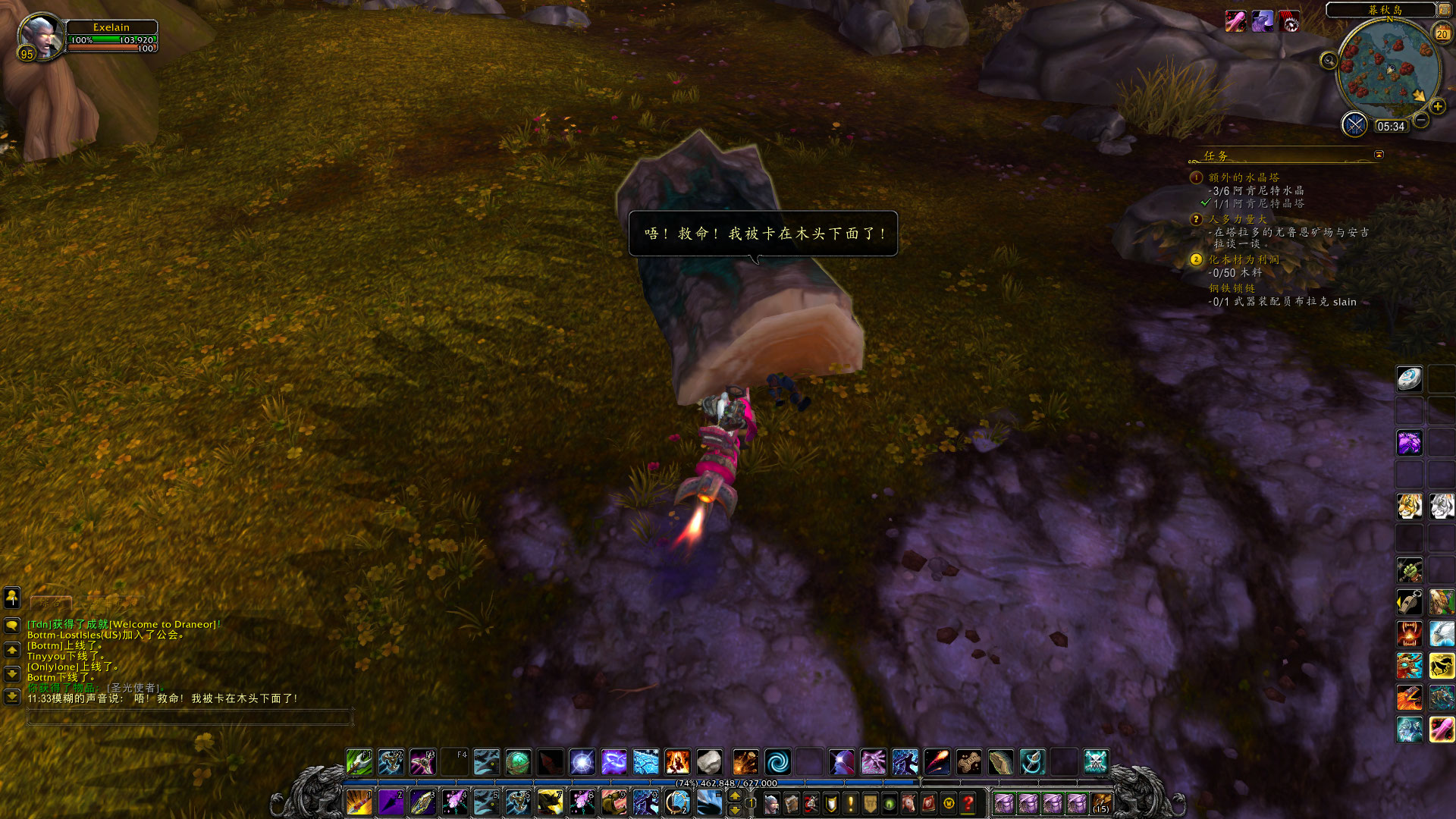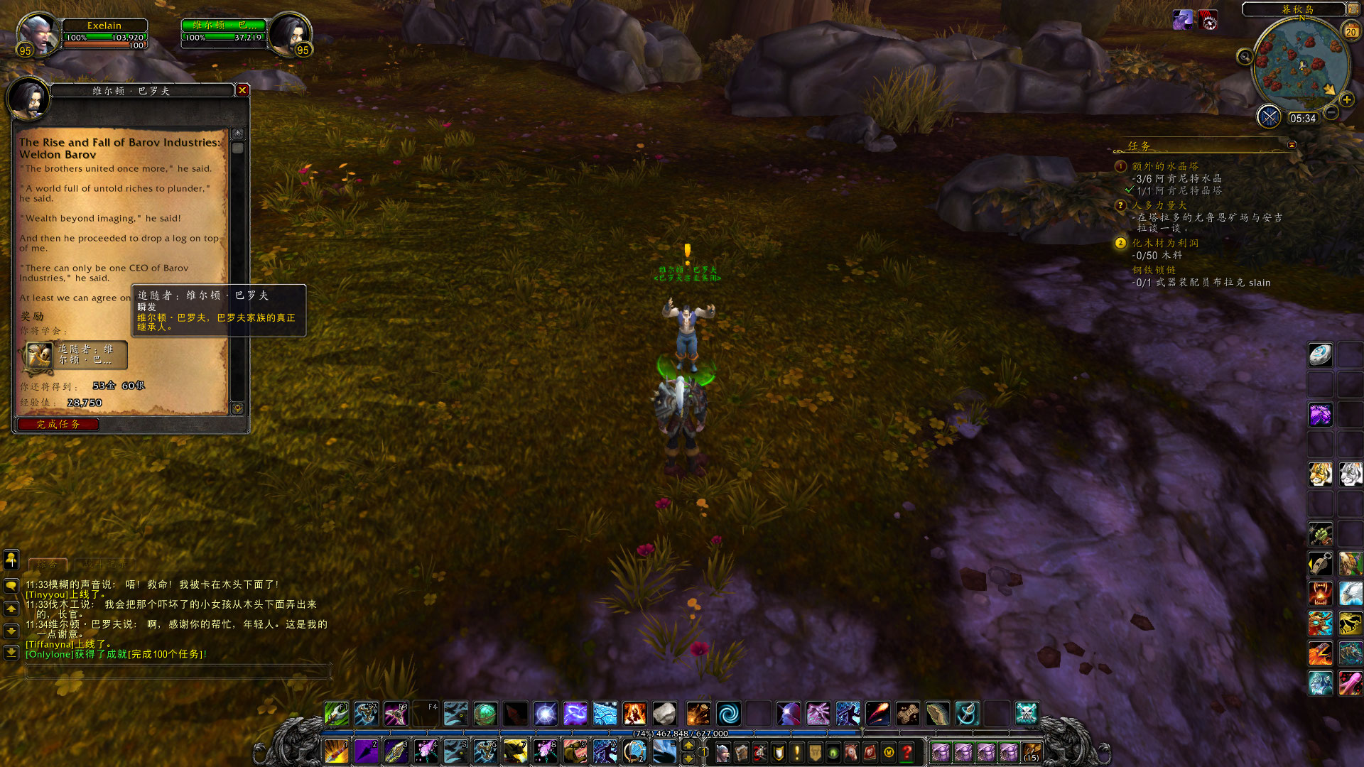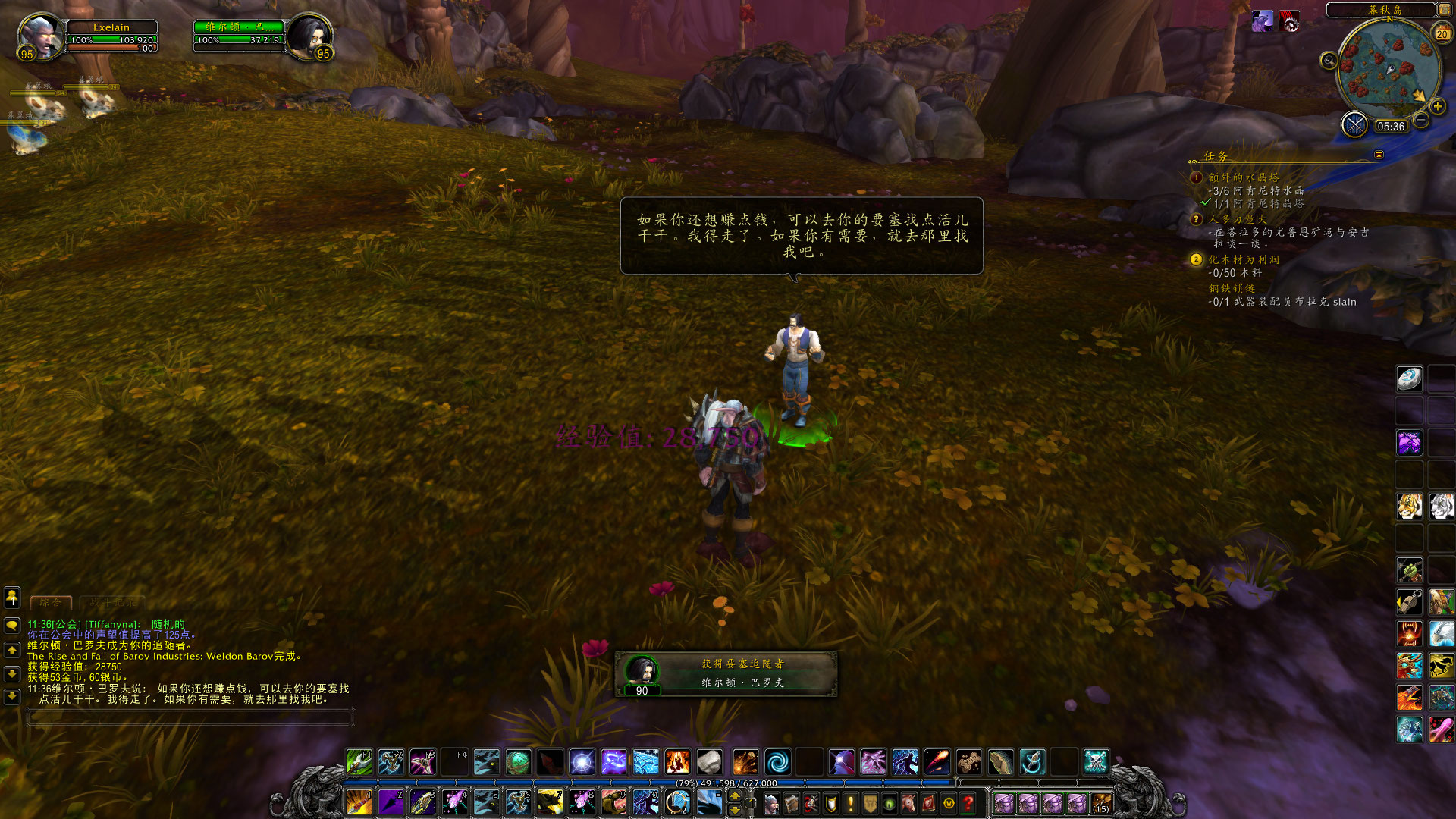 在伐木的工程中,偶尔也会遇到有趣的事情,比如我在塔拉多就发现了被倒下的树木给压住了的维尔顿巴罗夫。(没错,就是旧大陆赫赫有名的巴罗夫家族的后代,他们来到了德拉诺并开了巴罗夫实业公司~)