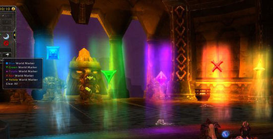 (5)团队场地标记。大地的裂变测试服后来加入了新的团队标记。在这种地面团队标记诞生前,团队要标注站位大多会使用工程学制作的各种烟雾弹。但是一旦进入战斗,这种道具效果反而会造成一些混乱。这种新的光柱效果中间还有旧版团队标记在上上下下地浮动。这项改动真的拯救了不少团队。