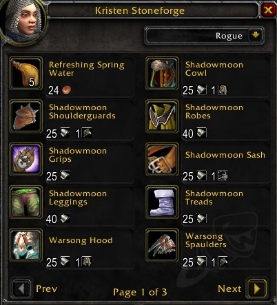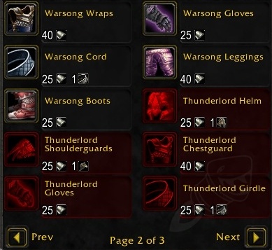 这些套装分为影月套(布甲),战歌套(皮夹),雷王套(锁甲)以及黑石套(板甲)。分别对应部落的氏族名称。