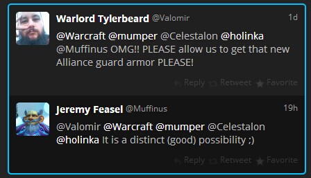 此外,除了人物模型,你要塞中的联盟或部落卫兵现在也获得了新的护甲视觉升级,而且玩家也有望很快获得这些护甲。