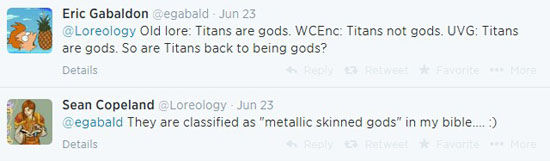 官网百科?那是什么?在哪里?《魔兽百科》是当年写在旧WoW美服官网上的一份剧情百科(虽然内容非常得少),那时候还远在改版成战网统一风格以前,所以我们现在是看不到的,但是网上其它地方是有留档的。上面明确地说"虽然泰坦远比那些个半神真神厉害,但他们本身却不是神。"