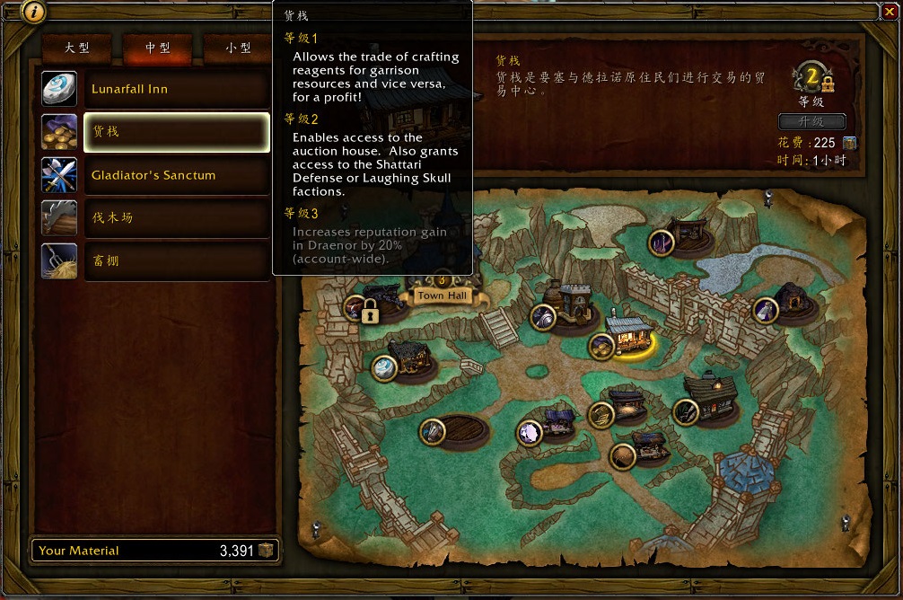 2级货栈:允许玩家使用拍卖行,同时开通沙塔尔城防军或者嘲颅氏族阵营的声望。
