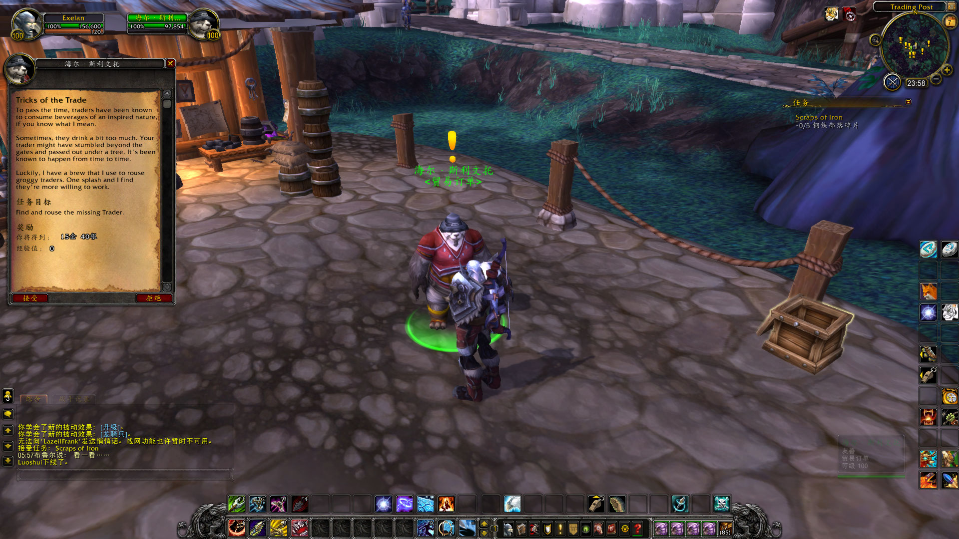 当货栈建造完成以后,能从货栈主人,熊猫人海尔斯利文托处接到任务:贸易的诀窍