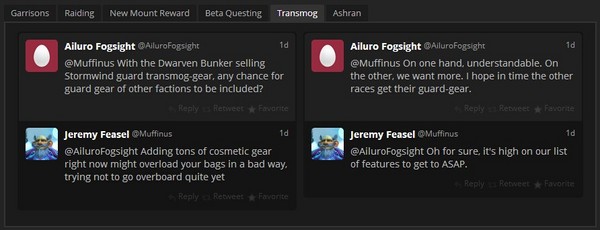 Q:除了暴风城,会不会有其他阵营的卫兵套装幻化出现?