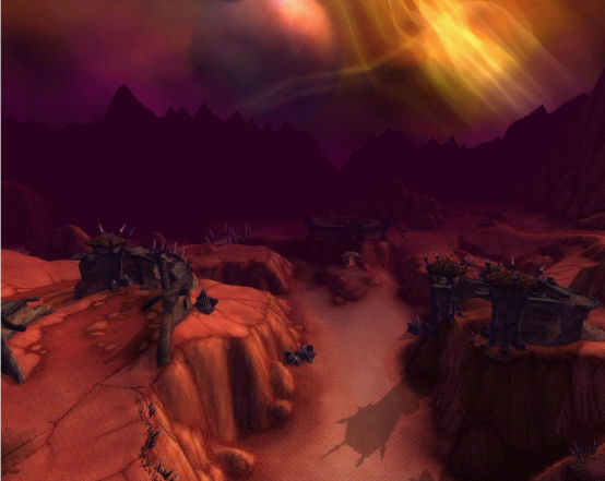 TBC登陆之地,尽管景象十分壮观,但却依然是炎热的。火红的土地,时常钻出巨大的虫子。火山四处可见,稍有片刻,便会有喷发的景象。