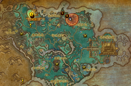 和之前版本一样,整个德拉诺大陆共分布4块挖掘点,地图上红色标注。