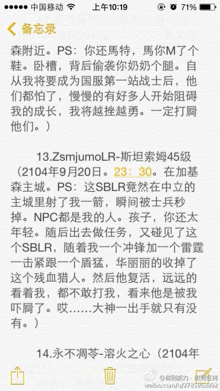 但今天要给大家介绍的这位玩家可不这么想,他把在野外杀他的(特别是守尸)的人全部用小本本记下来,等待日后为自己复仇,而他也在短短一周时间内便在黑名单上添加了23个ID,看看有没有你哇。PS:小编看完他的名单之后,顿时觉得这位玩家萌萌哒!