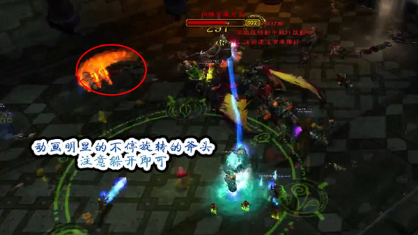 Boss会扔出一个旋风的斧头在场上不停的转,这个技能非常类似于奥格瑞玛中纳兹戈林将军满怒后放的旋风斧;另外Boss低血量会狂暴,还招出海量的小怪,无视他们Rush掉Boss就行了。总体来说,这个Boss非常的菜。