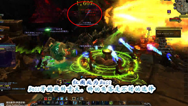 地面悬空阶段:就是战斗开始的阶段,站在桥上可以打到Boss,Boss飞在桥的中间。这个阶段主要注意Boss会一个180度旋转喷火,被喷到会被迷惑。去桥的两边可以有效躲过这个喷火,当然,如果已经躲不开,那么穿过火是不错的选择,坦克几乎必然会被迷惑一下。