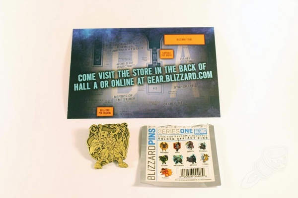 一个随机的饰针(我们拿到的是黄金玛法里奥),这个饰针可以在暴雪嘉年华或者在网上交易以此来收集一整套;