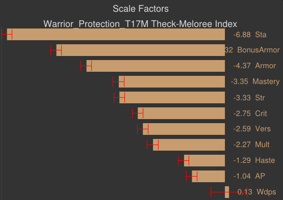 这是一份用SimC的T17神话模式的防战跑的免伤收益,可以作为一个参考。