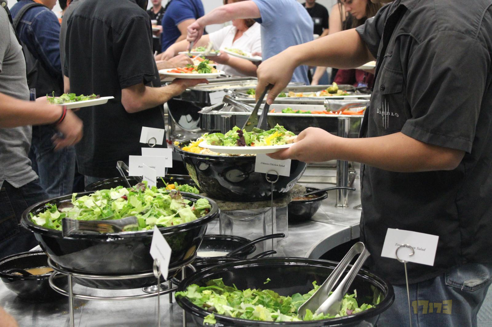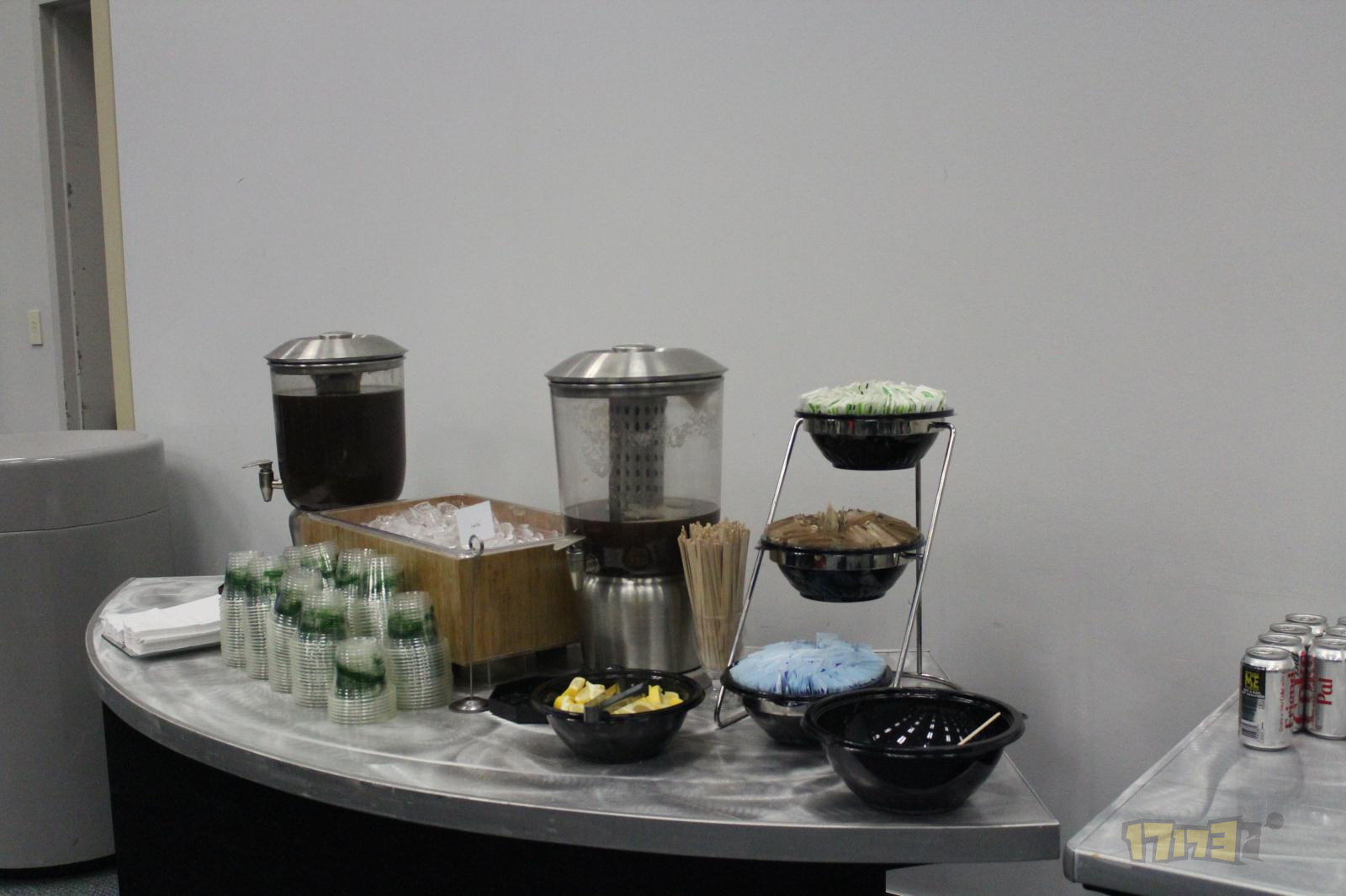 媒体室里提供了电源,网络等等资源,还有全天候的工作餐。工作餐除了常规的饭菜外,还有可乐,咖啡,冰茶等饮料,甚至还有精致的蛋糕和小零食,好贴心!