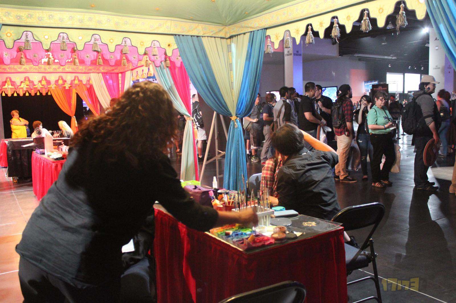 如果你想把自己打扮一下,更符合暴雪嘉年华的主题,但是又没有提前准备,怎么办呢?没关系,嘉年华提供了一个现场给你免费化妆和装饰的地方,你可以在这里把自己的脸画成熊猫人,暗夜精灵等等,或者在自己手臂上、腿上纹上部落/联盟的标志。