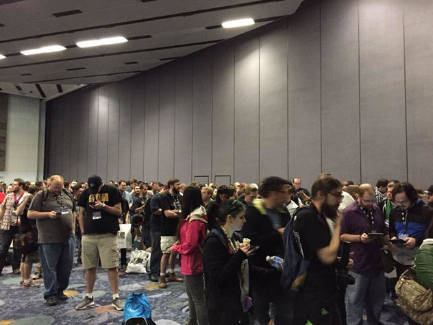 现场玩家正在有序排队,等待进入杜比大剧院