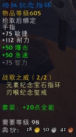 宝藏内容:塔拉纪念指环(605敏捷/智力戒指)
