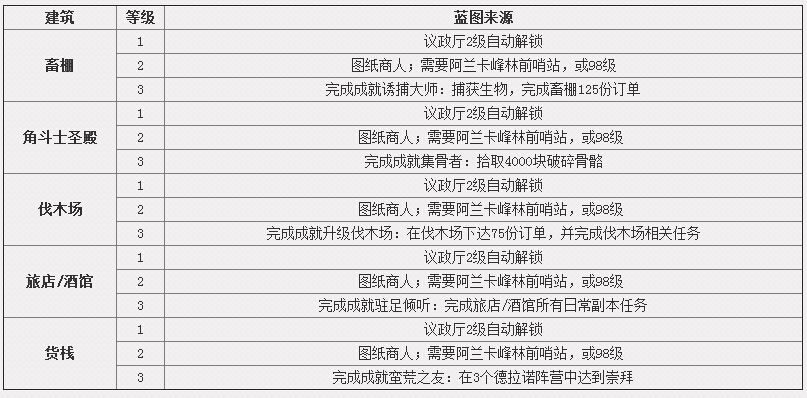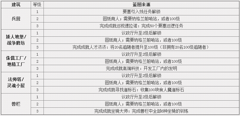在魔兽世界6.0团本开放前,大家都在忙着建造自己的要塞。要塞可以给予装备奖励,额外Buff以及各种资源!要塞的每一个建筑在升级时都需要先学会对应建筑蓝图,那么今天我们就列出了各建筑蓝图/图纸的出处 ,方便大家查找。