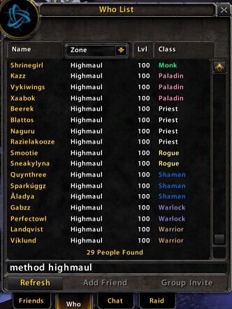具体阵容:2战士、5骑士、2猎人、2盗贼、1牧师、1死骑、3萨满、3法师、2术士、 2小德,没有武僧。