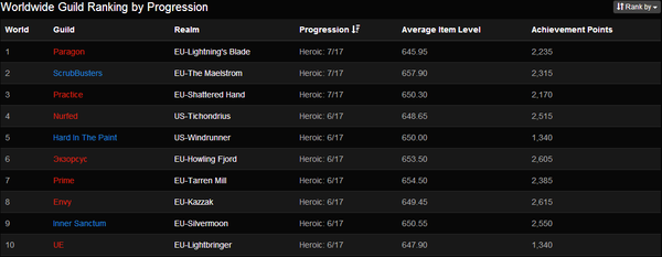 欧服于12月3日下午6:00开服,Paragon 在落后美服6小时的情况下,赶在诸多美服公会前攻克了英雄难度悬槌堡。