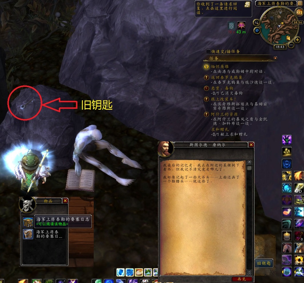 峰林有个随从海军上将泰勒,在他的要塞里面有个NPC,对话,说某某地方有他的箱子钥匙。我找了阵子,还真的找着了。