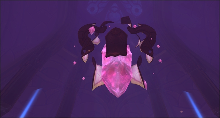 巨大的防护水晶漂浮在奥金顿的圣殿中,象征着奥金顿的庄严肃穆!水晶的力量如同水流在晶体的内部有节奏的涌动着,它是德莱尼昔日无数英雄的魂灵归所,这力量世世代代保佑着奥金顿这片圣地,护佑着爱好和平的德莱尼人民!然而暗影议会的黑手已经伸向了这片圣洁之地,企图污染和占优它!