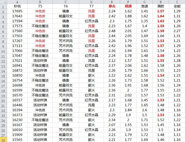 借助simulationcraft,用我自己的角色模拟的当前的27种天赋组合下的属性收益,表格较大: