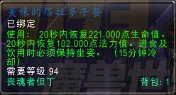 休闲党小泪我又来了,玩个新号无烹饪无钓鱼,吃喝拉撒难以解决,四海漂泊无依无靠苦的一B啊,好在小泪我喜欢寻宝,6.0的诺森德为玩家准备了不少吃喝道具,妈妈再也不用担心我打怪下副本没有吃喝拉,不是法爷照样吃到撑死!