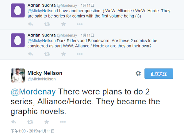 A:之前有计划做两个系列,联盟/部落。它们成了连环画小说。