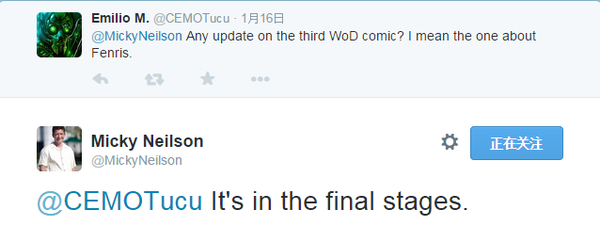 Q:WoD漫画的第三部有什么更新的消息么?我指的是芬里斯。