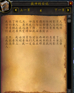 在影月飞地门口可以发现技师马顿暴尸荒野,在他身边捡起日记(《技师的日记》内容见附录)。由于这次日记点击就送,整个日常所需要的时间大大缩短。