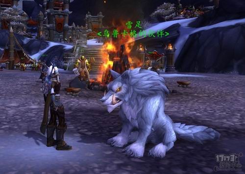2、部落霜火岭任务“体面的离别”中,会让玩家火化三具和食人魔战斗牺牲的霜狼氏族战士,在任务点附近能看到一个一瘸一拐的食人魔在抱怨脚被霜狼咬了,完成上面的任务后,你的要塞里出现一只叫雪足的霜狼,显示是“乌鲁卡格的伙伴”,就是你火化的三个霜狼氏族战士之一,去摸摸他就会跟着你撒欢(仅限要塞内)。