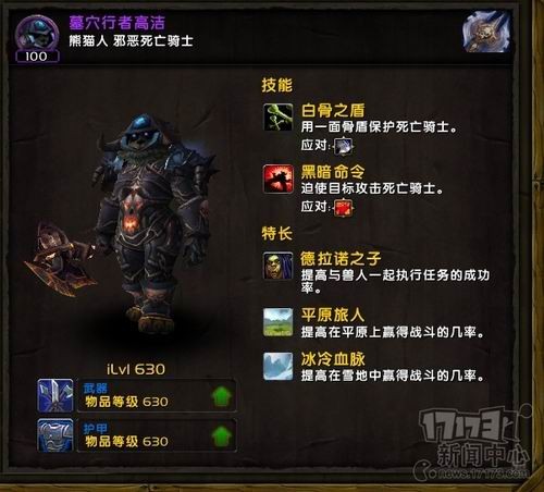 16、二级旅店能随机招募到一个熊猫人死亡骑士:墓穴行者高洁,考虑到潘达利亚与世隔绝了几千年,迷踪岛神真子也是在大地的裂变后才被联盟和部落发现,暴雪在回答玩家为什么不能创建熊猫人死骑时也强调了这个原因,那么这个熊猫人是怎么成为死亡骑士的呢?耐人寻味。