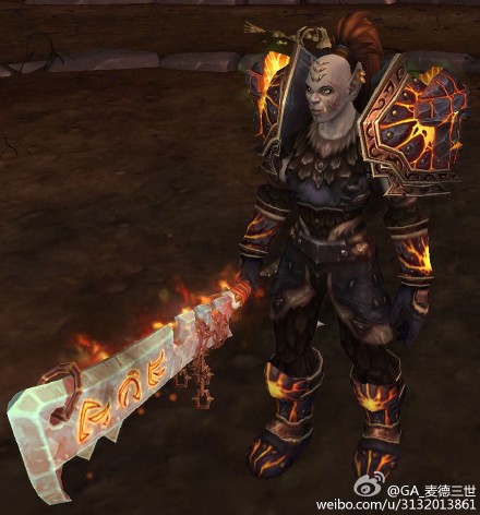 不过火刃氏族的名字倒不是从这个火油戏法里面得来的。而是一把真正的火焰刀,名为桑克苏,乃是火刃酋长们的祖传神剑。刀里封印了古代火元素的力量,还能窃取被它杀死的敌人的力量。如果你做过要塞战役,应该就见过它。火刃氏族的火油戏法其实都是模仿这把刀来的。