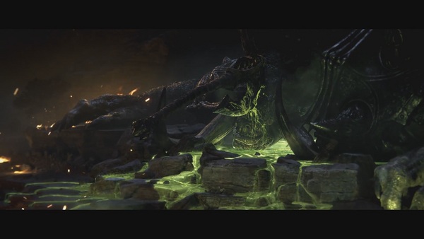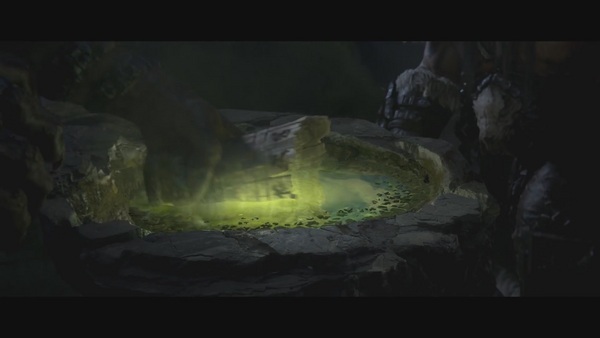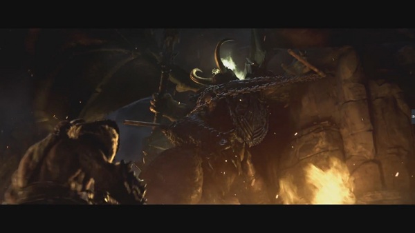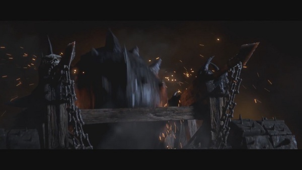 开场动画中的场景,35年前的基尔加丹王座,古尔丹试图说服老吼喝下玛诺洛斯之血。