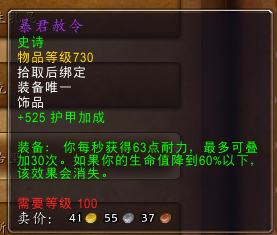 看脸饰品,buff和空角杯一样,打一下增加一层,不增加时间,你tm在逗我?这个饰品我个人认为适合狂暴战冰dk这种攻速快的,不适合惩戒骑。
