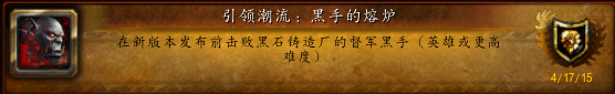 首先是黑石和悬槌的成就,引领潮流和千钧一发,这些成就6.2后将不能再获得,如果现在还没有的话赶紧叫上小伙伴们回归快速打掉吧。