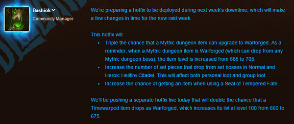 增加普通/英雄地狱火堡垒boss掉落的T18套装数量。该改动在个人拾取和团队拾取方式下都有效。