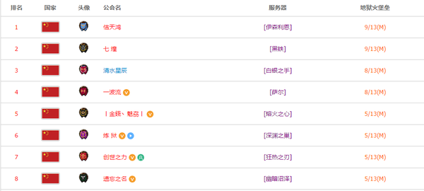 国服的话佶天鸿公会依旧卡在9/13M处,不过其他公会也开始发力了,星辰,一波流都突破了血魔达成了8/13M,七煌则是直接追平了佶天鸿的进度,并跻身世界前20。