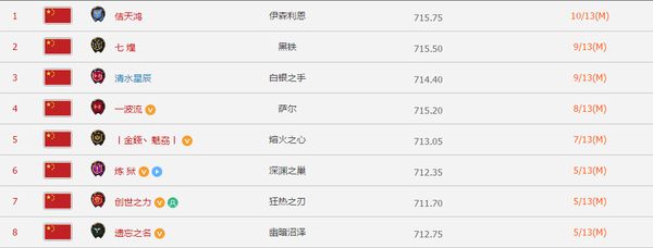 国服的佶天鸿公会昨天下午世界第6名斩杀了暴君维哈里,再次刷新了国服的进度到10/13M,当前名列时间第八,也是唯一一家杀入世界前十的国服公会,其他的国服公会依旧没有什么太大的变化。