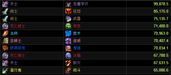 最后再单独讲一下DK,冰DK在第一周尝尽各种甜头后,现在已经不怎么给力,被砍得只剩下AOE能力了,但也算是曾经登顶过吧。