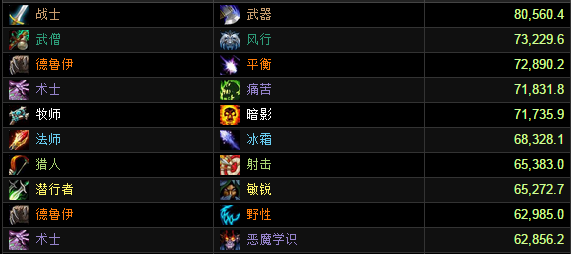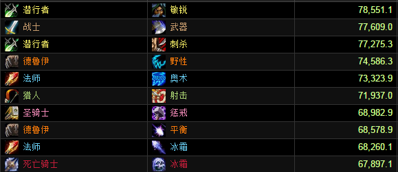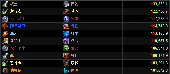 其次是敏锐贼,小编没玩过敏锐贼因此不过多评论,但是印象中打地狱火堡垒时盗贼的数据都很漂亮,无论是在单体战还是AOE战。此外战斗贼的表现也相当不错,名列第六。