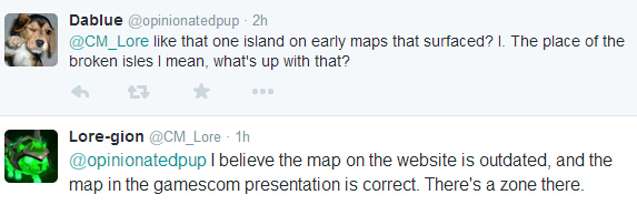 相信大家都注意到在8月7号凌晨科隆游戏展的发布会和官方网站上的新资料片破碎群岛地图有一些差异:发布会上公布的地图右下角有一块叫THAL'DRANATH的区域和一个ACHERUS小岛,而官方网站的新地图上并没有这两个区域。