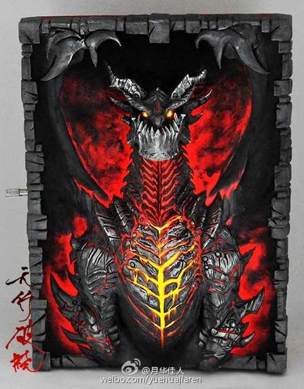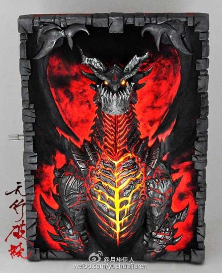 魔兽世界有爱玩家自制死亡之翼主题 立体书套:酷炫岩浆效果
