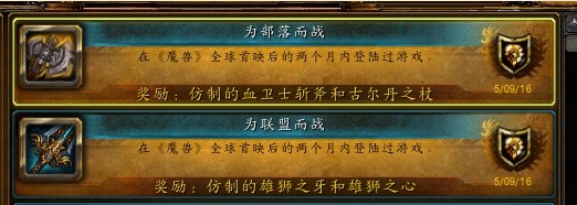 为庆祝《魔兽》电影隆重上映,暴雪为全球玩家准备了一个非常特别的《魔兽世界》游戏物品派送活动。5月25日——8月1日期间,所有登录《魔兽世界》国服的玩家,都将获得一个隶属于登录角色所属阵营的成就和幻化物品: