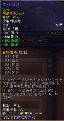 总结:毁灭的特效其实变化并不是很大,恶魔天赋由于灵魂火技能删除,更改成为了暗影箭提高宠物伤害。而痛苦天赋则是大改,由原来的黑魂延长鬼影,吸魂延长黑魂更改成为了以痛苦无常为核心的输出体系,具体输出如何需要进一步进行测试。