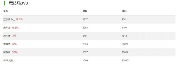 目前国服3v3竞技场的排名大概是这样一个样子:
